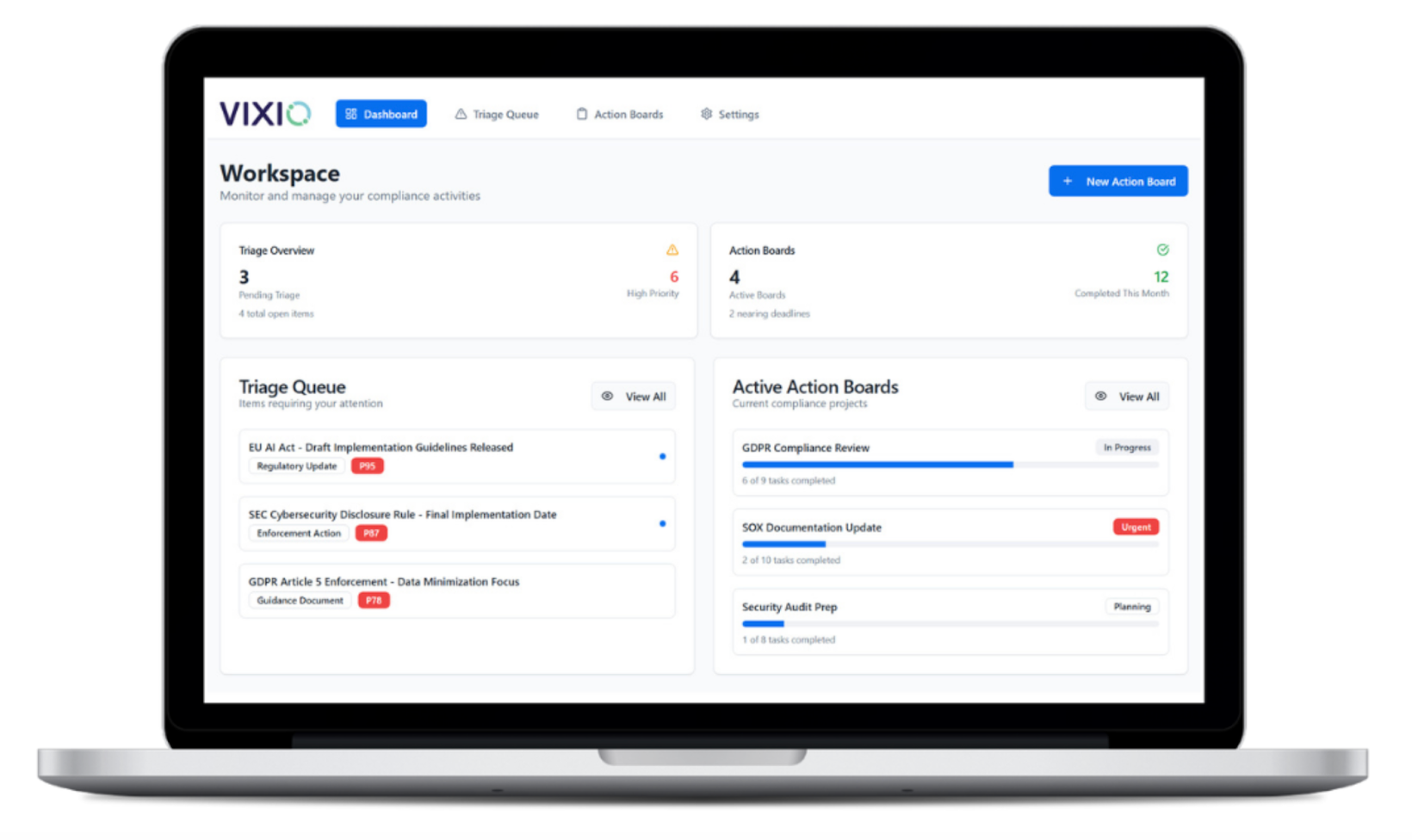 A key differentiator is how Vixio connects intelligence to action. Regulatory updates can be converted directly into tracked compliance tasks, giving teams a clear audit trail of how changes were assessed and addressed.