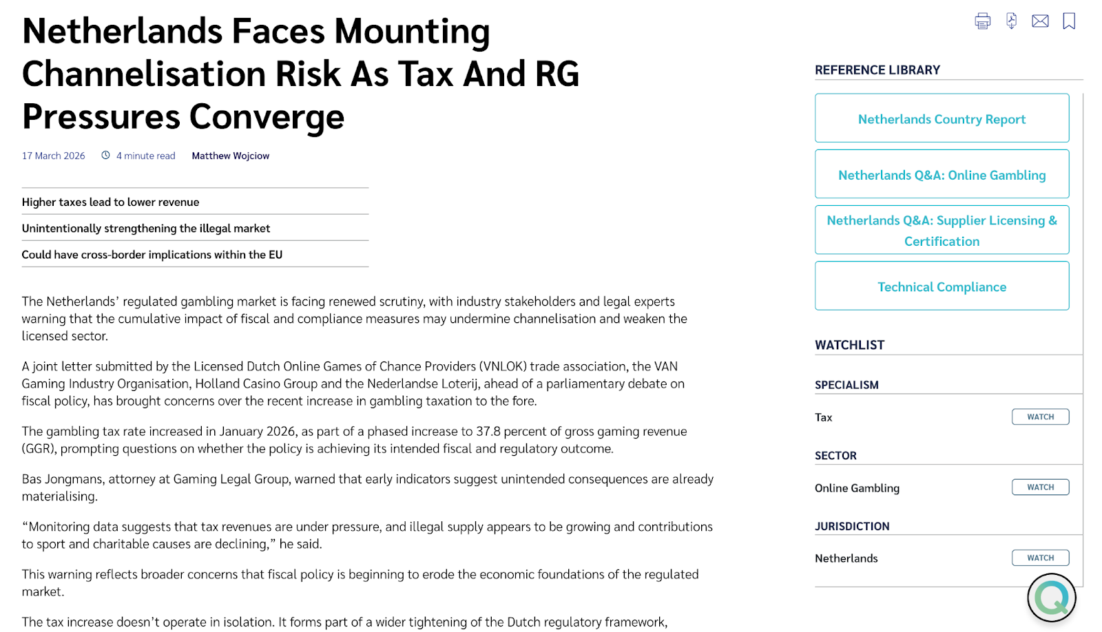 For example, this update regarding renewed scrutiny on the Netherland’s fiscal and compliance measures goes beyond just reporting the latest developments. The analyst also provides broader context on the issue, as well as insights on potential cross-border implications.